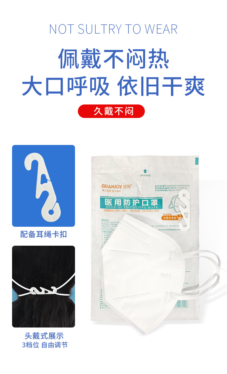 思源醫療器械溫馨提醒:注意佩戴N95口罩的時(shí)候,一般不要超過(guò)4到6個(gè)小時(shí),因為如果長(cháng)時(shí)間持續使用N95口罩,會(huì )引發(fā)呼吸不暢,人會(huì )不舒服。N95口罩跟KN95口罩的過(guò)濾效率一樣,防護能力在95%以上,對細菌和病毒有效的防護。