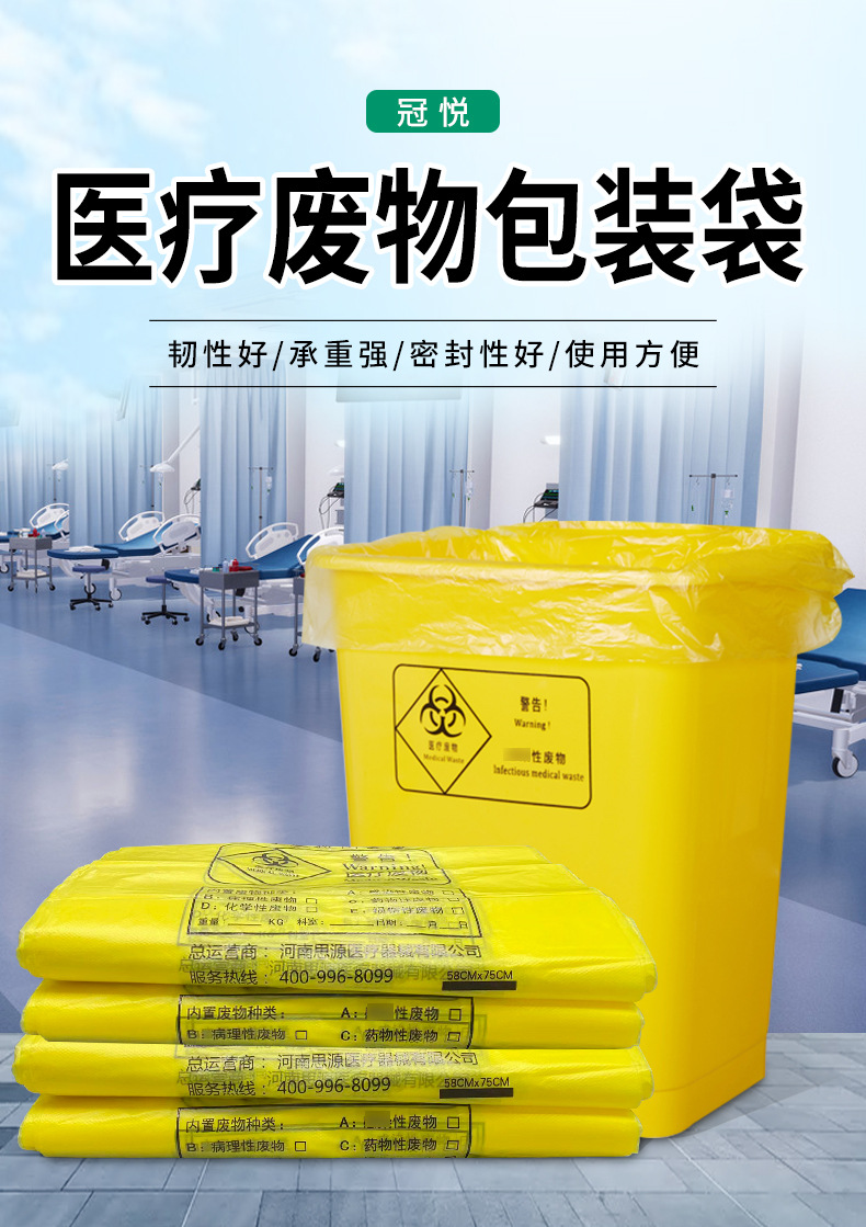 醫療廢物包裝袋要求:醫療廢物包裝袋要采用厚度符合要求的專(zhuān)用黃色聚乙烯(PE)包裝袋。